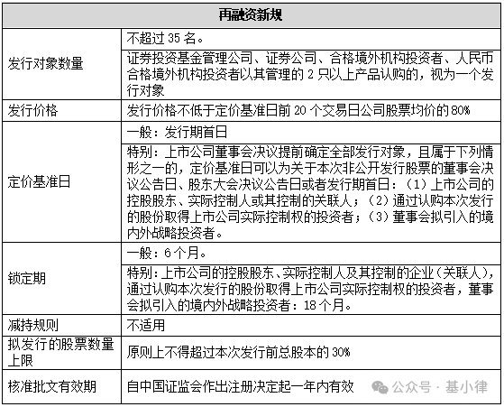 总体而言,再融资新规对于A股市场比较友好,降低了再融资的门槛和发行底价、增加了参与主体的数量、减少锁定期、不适用减持规则等方面给上市公司再融资带来了新的活力。再融资制度改革所带来的附带影响在于它将原来倾向于投资处于Pre-IPO的C轮和D轮的资金引流到定增市场,上市公司再融资只需要18个月解锁,而且不存在上市的风险,这也引导着市场上求稳、求短的资金走向定增市场。这也进一步满足了上市公司的再融资需求、提高投资者参与再融资的意愿和积极性,在很大程度上将投融资的选择权、决定权交由上市公司和投资者进行博弈,激发了市场活力,发挥了市场对资源配置的决定性作用。期待站在注册制背景下的再融资市场,给予私募基金更多的参与机会、介入方式和想象空间。